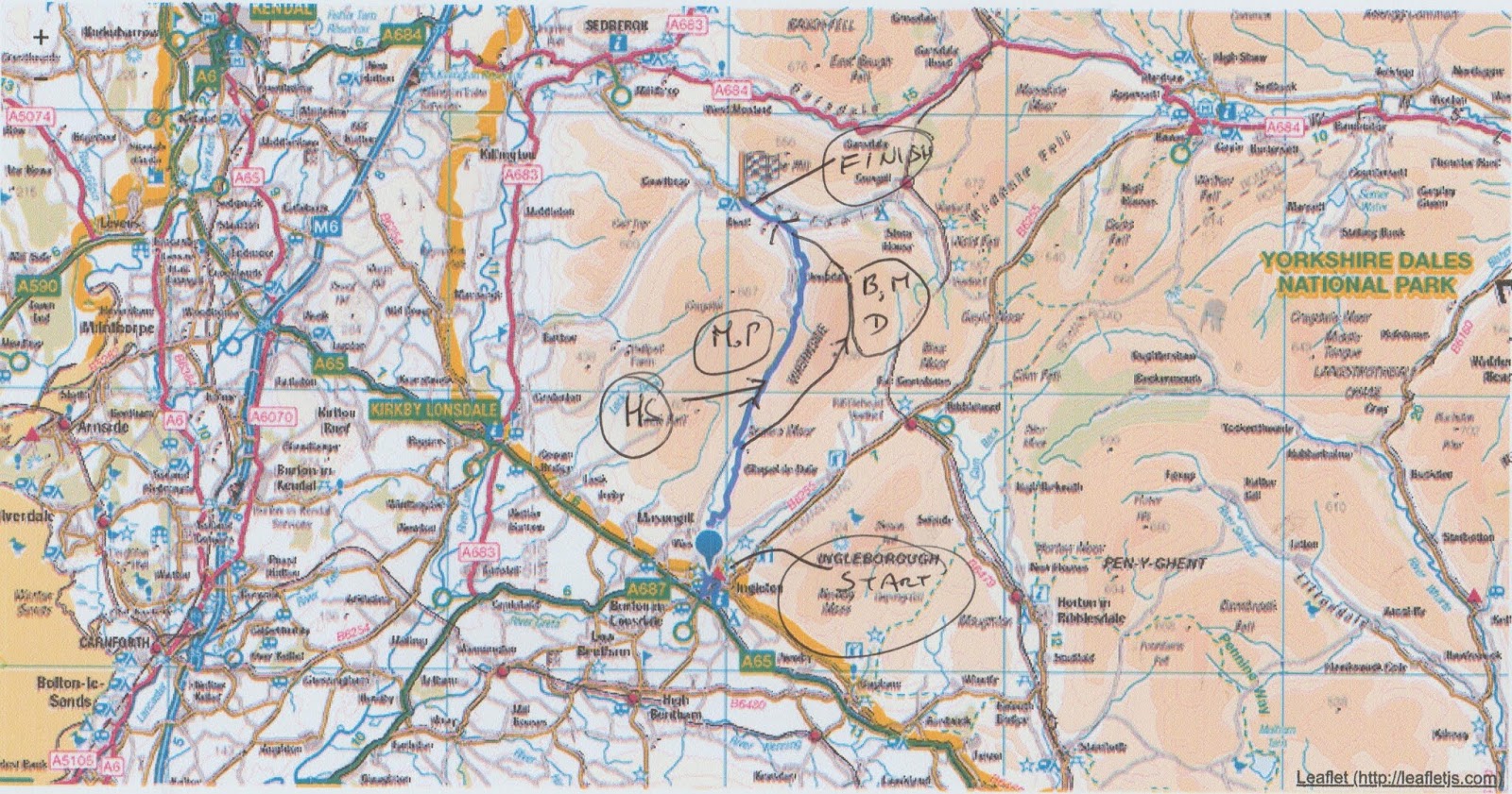 The walk was originally devised by Mike Schofield. It is a circular walk, starting from Settle although I suppose you could start at any point. The route crosses 41 tributaries to t